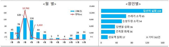매년 봄, 건조한 날씨와 함께 대형 산불이 반복된다. 최근 10년간 산불 피해의 88%가 3월에 집중될 만큼 문제는 심각하다. 입산자 실화, 쓰레기 소각 등 대부분의 원인이 사소한 부주의에서 비롯된다. 정부는 화기 소지 금지 등 국민적 동참을 호소하지만, 캠페인만으로는 재난을 막기에 역부족이다.